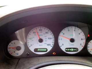 No, the milestone of which I speak is that of our little Chrysler Town & Country Mini Van. The little silver dung beetle of a car just passed 200,000 miles!